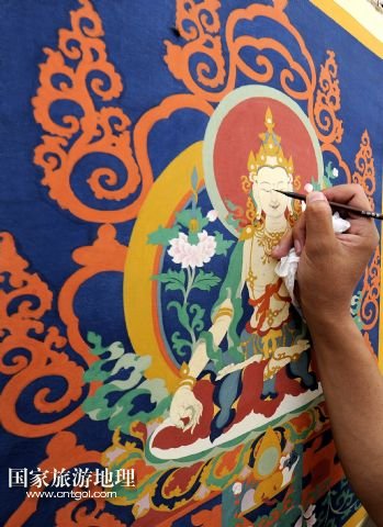 國家旅游地理 西藏拉薩8月4日訊 8月3日,一名畫師在現(xiàn)場演示唐卡繪制過程。當日,第三屆西藏“唐卡藝術博覽會”在拉薩羅布林卡舉行,共展出89名優(yōu)秀畫師的230多幅精品力作。唐卡作為藏族特有的繪畫,有上千年的歷史,已成為藏族文化的“名片”,受到國內外廣泛關注。 /新華社記者 覺果 攝