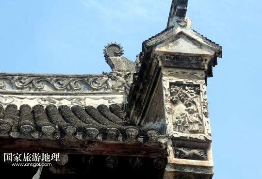 這條南北走向的小街,全長約5里,現(xiàn)存明清時代的建筑700余間,大多保存完好。其中有豪紳商賈所建的會館、廟宇,也有一般的民房,建筑造型各有特色。古街的宅樓構件,無不以石雕、磚雕、木雕藝術烘托而成。各種造型的石坊、門墩、柱礎、檐楣,可謂各具匠心,生動逼真。