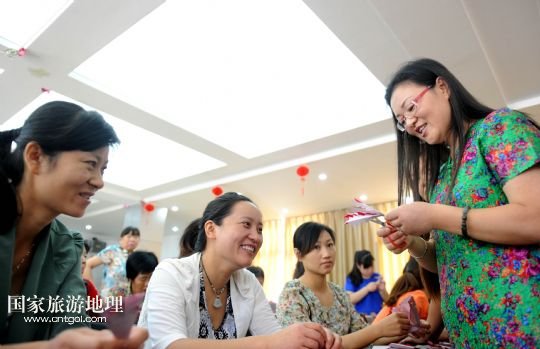 國家旅游地理 安徽合肥9月17日訊 9月17日,非遺剪紙傳人侯宏妹向學員講解“花好月圓”剪紙作品的制作。當日,合肥市清溪路社區(qū)邀請非物質文化遺產剪紙傳人侯宏妹來到社區(qū)向剪紙愛好者傳授技藝,并一起創(chuàng)作中秋題材的剪紙作品,迎接中秋佳節(jié)。 /新華社記者劉軍喜攝