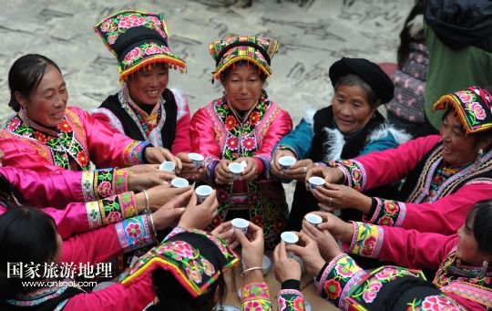 國家旅游地理 四川阿壩11月2日訊 11月2日,身著節(jié)日盛裝的四川省阿壩州汶川縣龍溪鄉(xiāng)村民們舉杯迎接羌?xì)v新年的到來。當(dāng)日,四川省阿壩州汶川縣龍溪鄉(xiāng)舉行傳統(tǒng)儀式迎接即將到來的羌?xì)v新年。今年的11月3日農(nóng)歷十月初一是羌?xì)v新年,這是羌族一年中最為隆重的“慶豐收、送祝福、祈平安”的節(jié)日,按民間習(xí)俗,過羌年時(shí)要還愿敬神,全寨人歡聚一堂,吃團(tuán)圓飯,共慶佳節(jié)。 /新華社發(fā)(何海洋 攝)