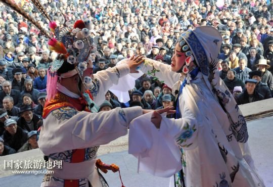 國家旅游地理 1月2日訊 2014年1月2日,在安徽省亳州市譙城區(qū)十河鎮(zhèn),演員在表演亳州非遺劇種“二夾弦”。當日,安徽省亳州市譙城區(qū)2014年“三下鄉(xiāng)”活動啟動,當?shù)蒯t(yī)療、文化、科技部門的“三下鄉(xiāng)”服務隊到基層開展文化、衛(wèi)生、科技、法律下鄉(xiāng)活動,為基層群眾送上新年的問候。 /新華社發(fā)(張延林 攝)
