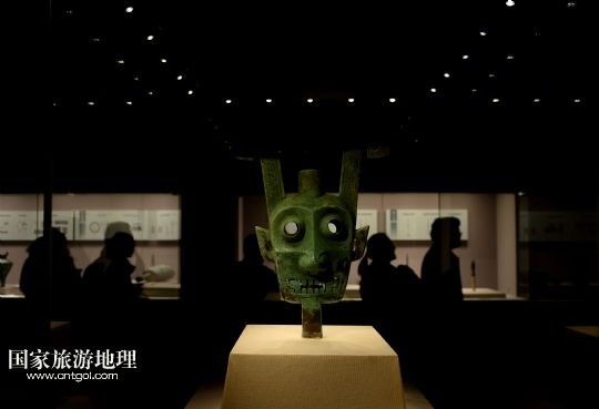 3月1日,人們?cè)诮魑奈锞氛股蠀⒂^雙面神人青銅頭像。